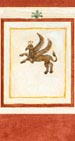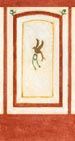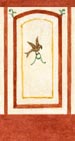 Left-hand panel of three with a flying swallow carrying a ribbon or garland. After a fresco from the Building of the Charioteers in Ostia. |