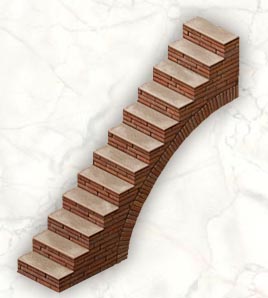 Staircase with brick risers and stone treads. Arch underneath for a lighter look; you may wish to butt it up against a wall so it doesn't look like it's going to fall over. |